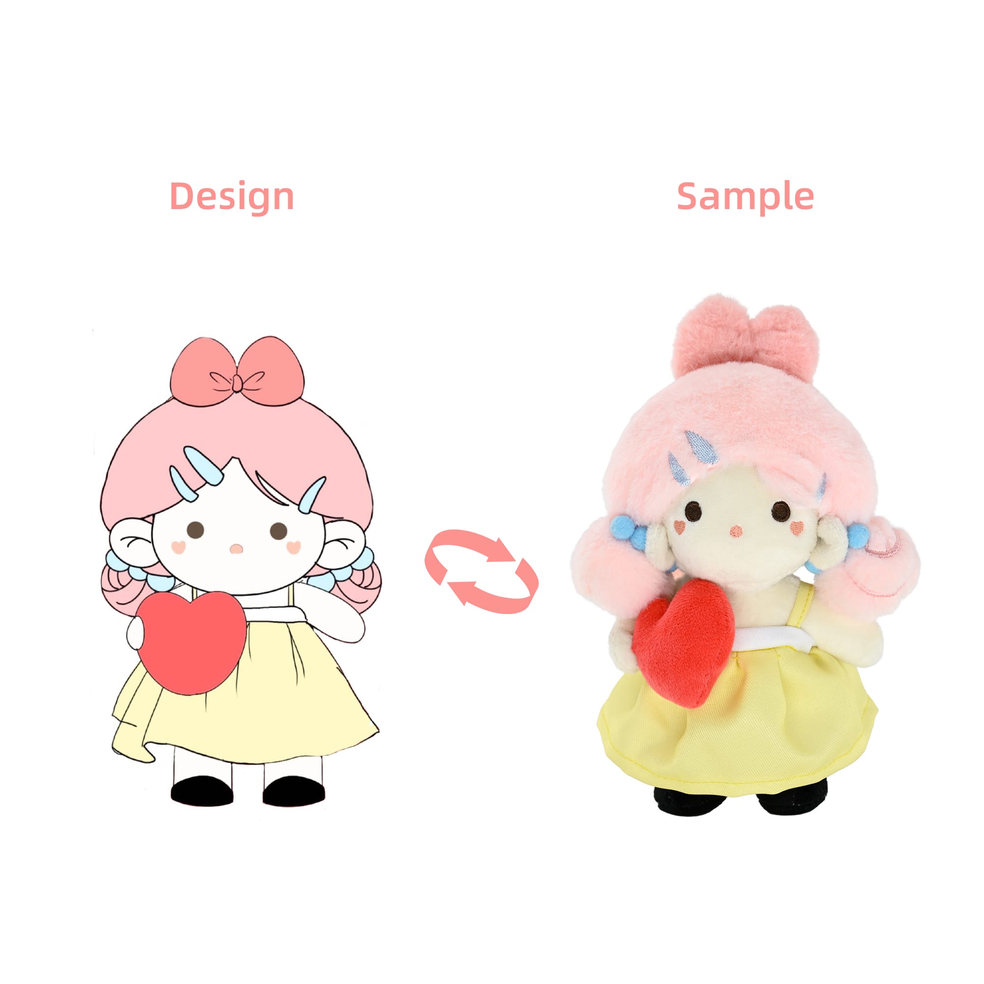 Get A quote | 1. Your design drawing: it will be more helpful to quote and make samples if you have multiple angles such as front, side and back. 2. The size of the plush bag you want 3. Estimated quantity for mass production |