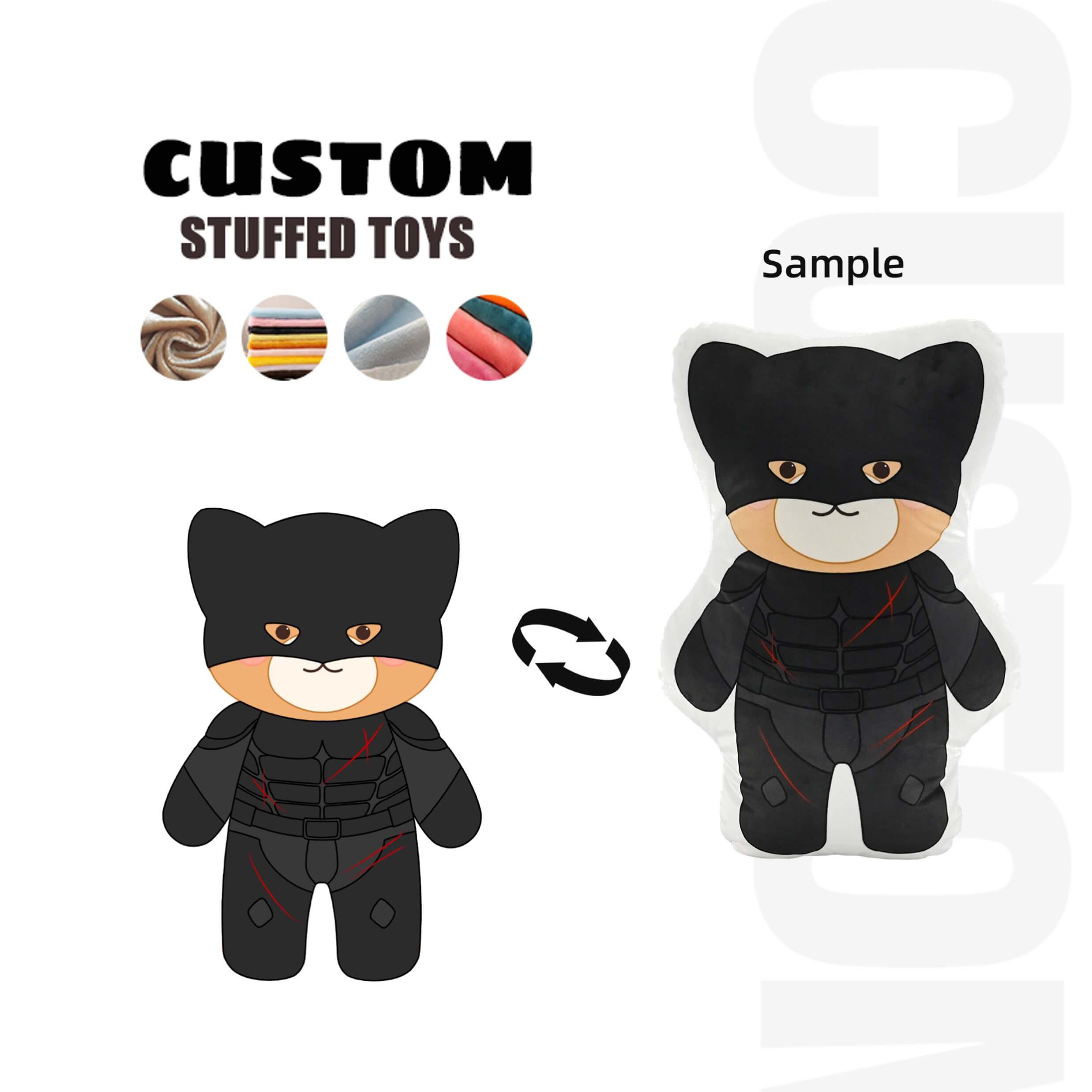 Get A quote | 1. Your design drawing: it will be more helpful to quote and make samples if you have multiple angles such as front, side and back. 2. The size of the plush bag you want 3. Estimated quantity for mass production |