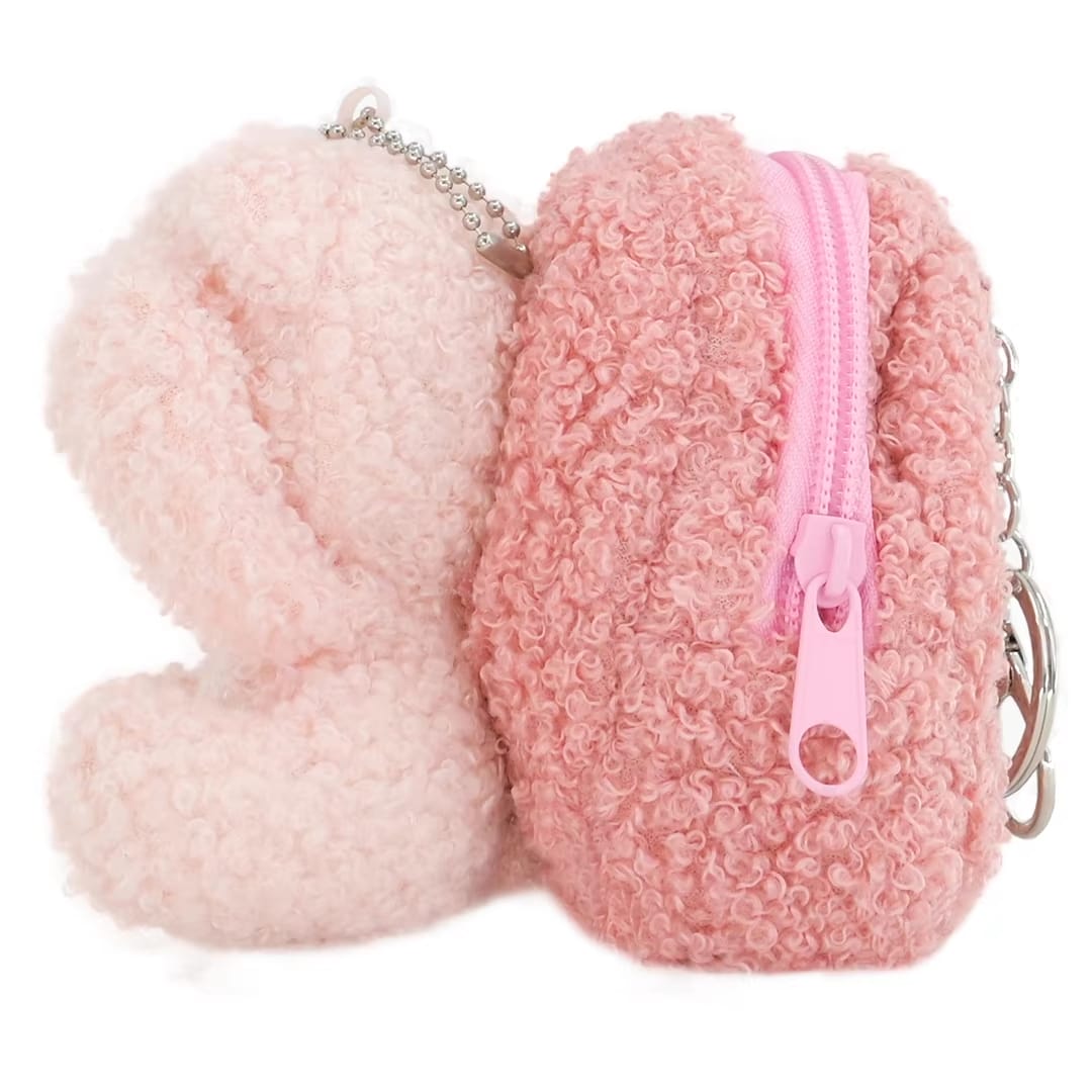 This coin purse is crafted in the shape of an endearing pink bear. Its fluffy pink exterior, round ears, shiny black eyes, and a sweet stitched – on nose make it look incredibly cute, melting your heart at first sight.